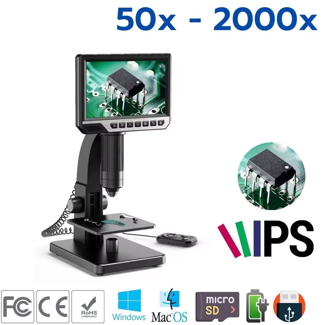 หน้าจอกว้าง 7" IPS ความคมชัดถึง 12 ล้านพิกเซล (12M Pixels) ดูสบายตา เก็บความละเอียดได้ทุกมุมมอง มาพร้อมเลนส์ขยาย 2 อัน เพิ่มกำลังขยายตั้งแต่ 0x ถึง 2000x เท่า ขยายซูมภาพ ส่องดูชิ้นงาน ตั้งแต่ ดูความละเอียดชิ้นงานทั่วไป เช่น การตรวจสอบคุณภาพชิ้นงาน (QC) ตลอดจนถึง ส่องกล้องจุลทรรศน์ กำลังขยายสูง เพื่อ ดูพืช สิ่งมีชีวิต หรือ จุลินทรีย์ ในถาดทดลอง ให้ความกระจ่างชัดทุกมุมมอง ด้วยหลอดไฟ LED ส่องจากด้านบน และ ด้านล่างของชิ้นงาน เคลียชัดทุกมิติ หมดปัญหาเรื่องแสงสว่างไม่เพียงพอ หรือ มุมมืดจากชิ้นงาน ลดความเมื่อยล้าสายตา เพิ่มความสนุกเพลิดเพลินกับ งานวิจัยและ การงานตรวจสอบคุณภาพ ส่งผลงานที่บันทึกได้ทั้งเป็น ไฟล์ภาพ หรือ ไฟล์คลิปวิดีโอ ที่สามารถเลือกขนาดและความละเอียดภาพได้ สินค้าคุณภาพ มาตรฐานสากล FC CE และ RoHS